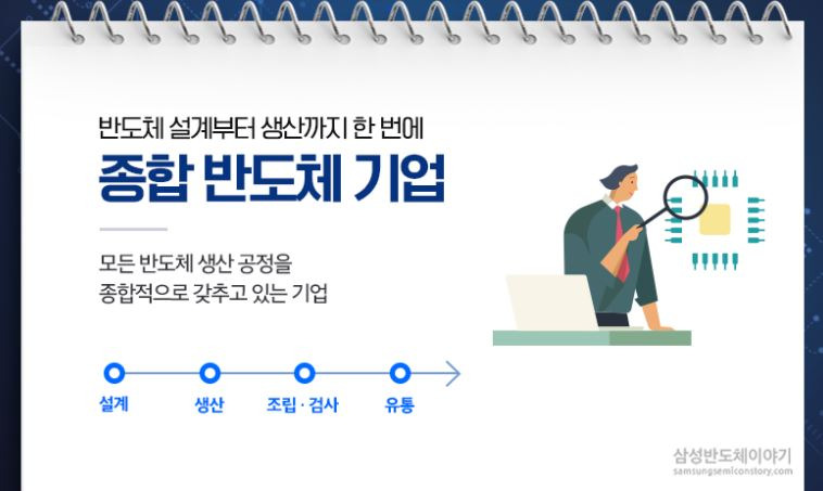 쉽게 말해 반도체 생산의 A부터 Z까지 모든 단계를 한 회사에서 직접 다 하는 거죠!